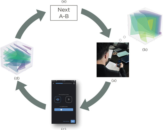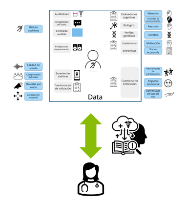 La IA aprende las preferencias del paciente mediante Inferencia Bayesiana, permitiendo una personalización continua del sonido. Herramientas como COSI 2.0 y las Evaluaciones Momentáneas Ecológicas (EMA) o la evaluación basada en frases (BEAR) facilitan la adquisición de datos de la experiencia real del usuario para optimizar el sonido.